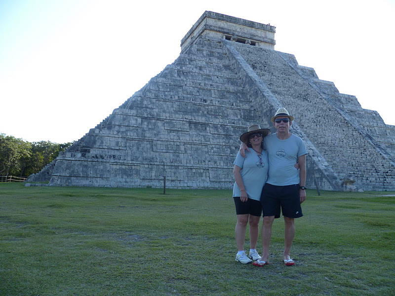 A viagem pela Aeromexico foi muito boa. Chegamos na véspera à Mérida que é a capital e a maior cidade do estado do Iucatã, no México. Localiza-se no sudeste do país e tem cerca de 800 mil habitantes. É a cidade grande mais horizontal que conheço,. Quase todas construções são baixas. O hotel Del Carmen, aonde ficamos é um dos mais altos que vi e tinha três andares e há pouquíssimos mais altos. Cedo tomamos el desayuno e saímos de minicarro para nosso passeio mais longo. Saímos em direção á Chichén Itzá que é uma cidade arqueológica maia que preserva várias estruturas entre elas, as que chamam mais a atenção são a pirâmide e a Praça das Mil Colunas. A pirâmide foi provavelmente o último e mais grandioso templo da civilização maia. Depois da visita seguimos para Tulum. O jantar em Tulum foi exatamente o que estava sendo idealizado durante a viagem, um belo peixe fresco inteiro grelhado na chapa. Alguns experimentaram a forte tequila mexicana e a noite ficou mais descontraída. Exquisitos tacos, natchos e pimenta bem forte também fizeram parte do lauto jantar. Ficamos em hotelzinho bem simples chamado Chilam Balam.